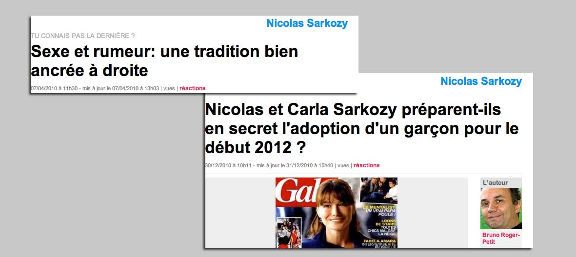 Mais, c'est certainement dans l'art de l'insinuation que le journaliste de connivence peut le mieux déployer son art. Son domaine : la généralisation vague, la dénonciation globalisante de la droite, le retournement de veste, le commentaire venimeux. Ecrire tout est son contraire, mais toujours dénoncer. Faire son miel des ragots sur la vie privée sous un président de droite, et si possible en inventer, mais pour mieux dénoncer les atteintes à la vie privée sous un président de gauche. Tartuffe à l'heure d'internet. Bruno Roger-Petit y excelle.