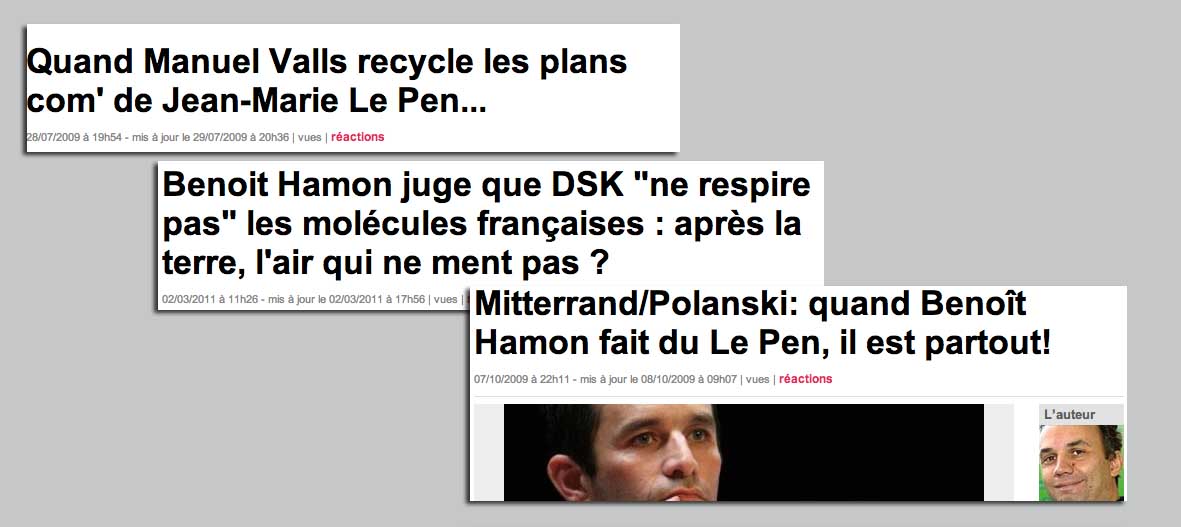 La méthode béhachélienne d'intimidation peut connaitre des ratés. Journaliste aux Inrockuptibles, David Doucet a démonté avec beaucoup de rigueur et d'à-propos les mensonges de Caroline Fourest sur Frédéric Taddeï. L'agenda de carrière ou de promotion leur tenant lieu de pensée, il est assez facile de suivre les adeptes de la méthode BHL à la trace. Contrairement à ce qu'on pourrait croire, les victimes ne sont pas toutes de droite, loin s'en faut. Les petits meurtres se pratiquent également entre amis. Longtemps au service de la coterie strauskhanienne, Bruno Roger-Petit a utilisé la méthode béhachelienne contre Manuel Valls, quand en 2009 ce dernier cherchait à prendre ses distances avec son mentor, ou contre Benoît Hamon, le remuant représentant l'aile gauche du parti socialiste (quand il était dans l'opposition).